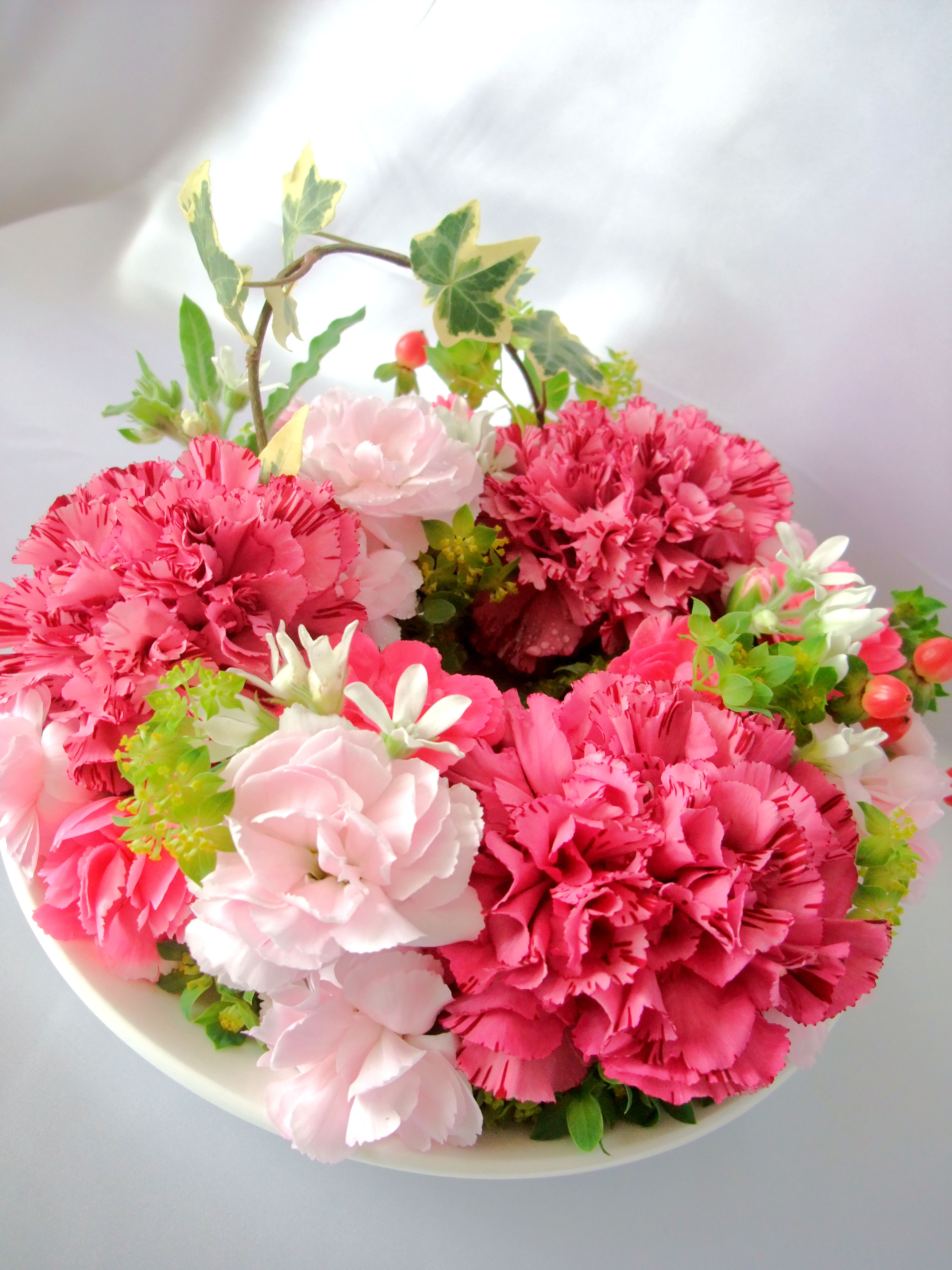 ・「母の日☆生花ギフトアレンジ」レッスン・・・「カーネーションのテーブルリース」