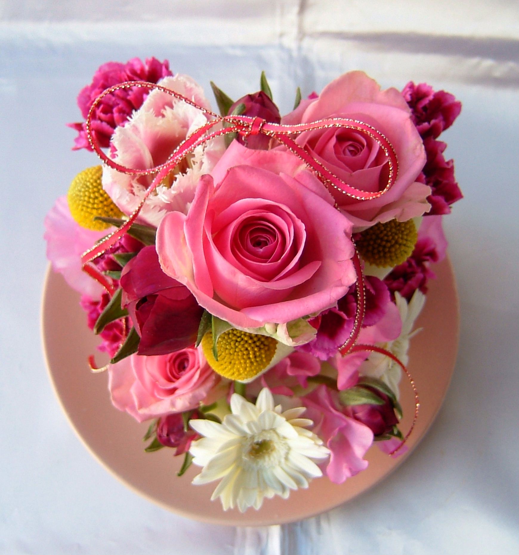 キュートなハート型のフラワーケーキはいかがでしょう?