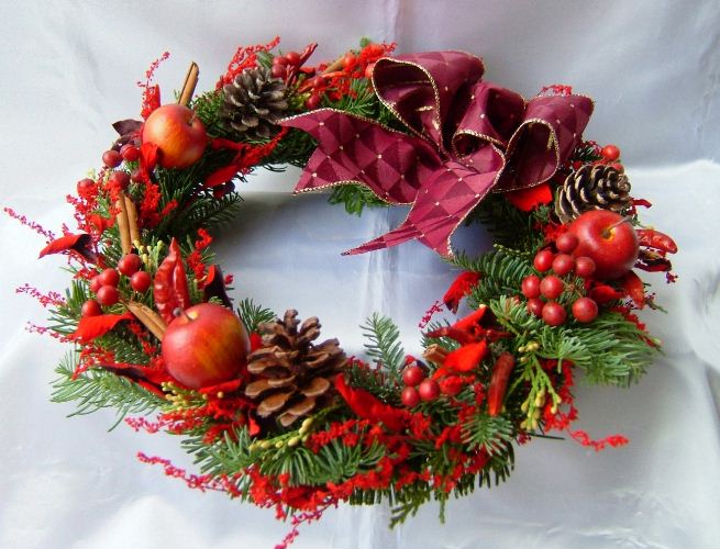 サムシングブルーでは久々の定番、丸いクリスマスリースのレッスンです。